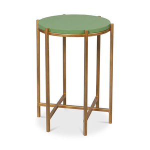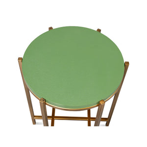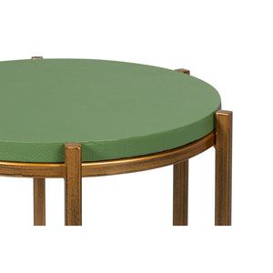 Introducing our Modern Green Leather Top Accent Table, where contemporary design meets sophisticated luxury. The table features a stunning watercress green leather-wrapped shagreen embossed round top in an vibrant green hue, creating a sleek and stylish surface.