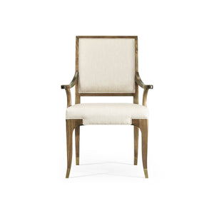 The Modern High Back Dining Armchair is a beautiful piece of furniture that combines both comfort and style. The padded backrest, carved and curved arms, and boxed upholstered cushion provide excellent support and make it perfect for long dining sessions with family and friends.