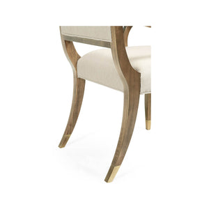 The flared legs ending with brass caps add to the chair's stability and elegance, while the use of hardwood ensures its durability. The chair's dimensions of 23 5/8" W x 26 3/8" D x 39 1/8" H make it suitable for a standard-sized dining table.