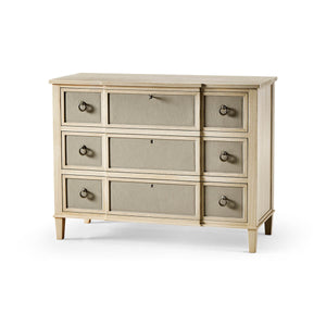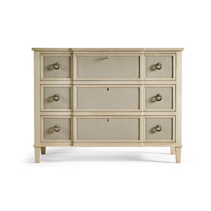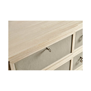 Modern Leather Front Chest of Drawers, with three hand-woven leather drawer fronts in Moore & Giles Hudson smoke possesses richness, dimensionality and warmth made possible by an impressive display of furniture craftsmanship.