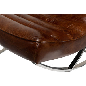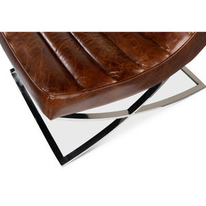 Modern Leather Lounge Chair with a channeled pure aniline top-grade antiqued brown leather, on a modern silvered stainless steel X form base.