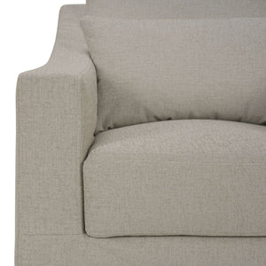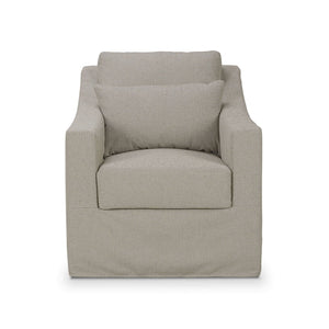 Introducing our Modern Slip Cover Swivel Armchair, covered in premium sand performance fabric for both elegance and durability. This exquisite armchair features a sleek, modern silhouette with a sophisticated slipcover design. The plush cushioning ensures superior comfort and support, while the neutral sand color seamlessly blends with any décor.