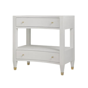 This modern white painted nightstand is a true masterpiece of craftsmanship, designed to bring a touch of elegance and sophistication to any bedroom. Hand painted with white a linen color, it boasts a unique concave form front that catches the eye and adds an element of interest to your room.