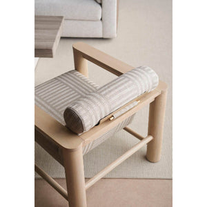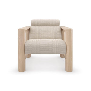 Natural Oak Arm Chair, with a luxe, lounge-like aesthetic, this statement-maker exemplifies a unity of materiality, form and function. An upholstered no-sag foam seat and backrest.