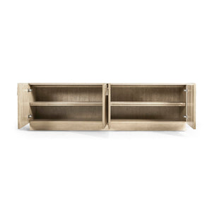 The Organic Modern Entertainment Console is the embodiment of functional sophistication. With its solid oak frame, this console marries durability with a sleek, contemporary silhouette, making it a timeless addition to any home.