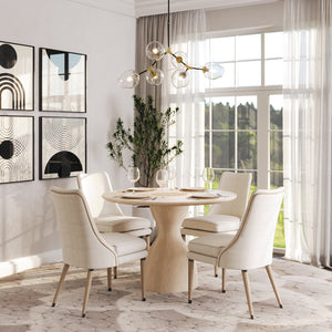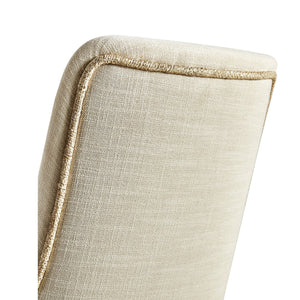 Refined elegance meets organic charm in the Organic Modern Linen Upholstered Side Chair. Its performance linen upholstery with a grasscloth welt blends texture and durability, while a contoured back and plush cushion ensure comfort.