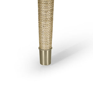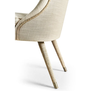 Solid hardwood legs wrapped in grasscloth highlight artisanal craftsmanship, complemented by satin brass ferrules. A perfect fit for modern tropical or contemporary interiors, this chair balances timeless style with practical elegance.