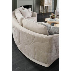 Organic Modern Sectional Sofa, free-flowing and organic, the sofa's soft curves are artfully accented by a quilted ginkgo leaf pattern, fanning out along the back and sides. Its nature-inspired design adds graphic interest and dimension, complemented by a curved plinth base wrapped in pearl vinyl.