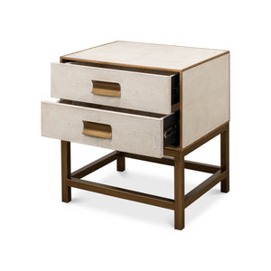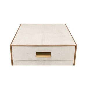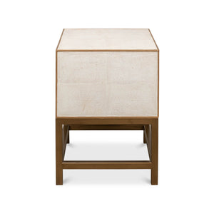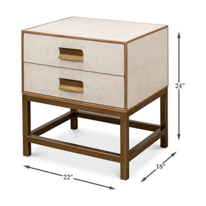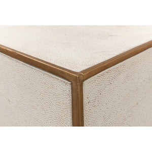 Elevate your space with the Osprey White Modern End Table - a sophisticated piece that merges the worlds of function and fashion. Constructed from wood and exquisitely adorned with leather, this table shines in a charming Osprey white finish, edged with striking gold trim that exudes luxury.