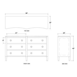 The subtle texture of the linen finish enhances its modern appeal, while the six spacious drawers provide ample storage for your essentials. Adorned with chic gold ring pulls, this chest effortlessly combines functionality with refined elegance, making it a standout piece in any room.