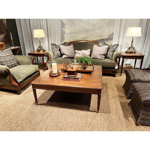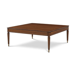 The Regency Style Square Coffee Table brings classical sophistication and architectural grace to the heart of any living space. Crafted in a warm walnut finish, its generously scaled square top is accented with fine brass inlays, adding a subtle gleam to the richly figured wood grain.