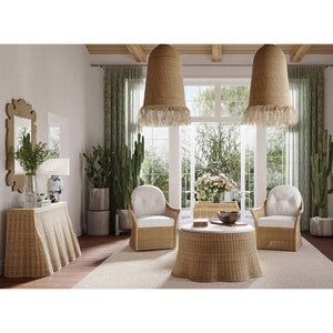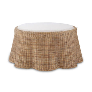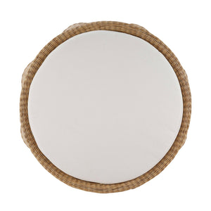 Crafted with high-quality rattan, this round stool features a charming natural finish that adds a warm and inviting vibe to your decor and has a round arctic white upholstered cushion. The round shape and delicate curves create a sophisticated draped silhouette, making it an eye-catching addition to your living room, sunroom, or patio.