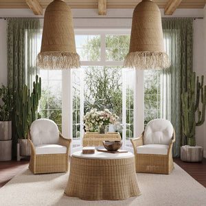 Bring a touch of rustic elegance to your living space with this Chic Natural Round Rattan Ottoman. Measuring 41" W x 41" D x 19" H, this stunning piece combines natural beauty with functional design, making it a perfect centerpiece for any room.