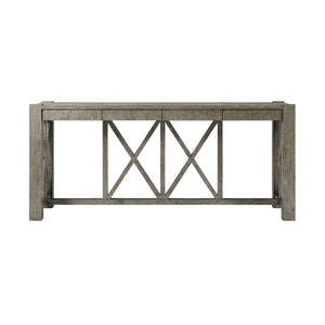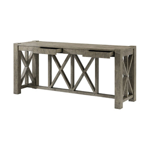 Bring a sense of rustic charm and robust elegance to your home with our Rustic Greyed Oak Large Console Table. Featuring a planked oak top finished in a greyed echo oak, this console table is lightly distressed to enhance its warm, inviting look. It provides a generous surface area that is perfect for displaying decorative items, books, or even serving beverages and snacks during gatherings.