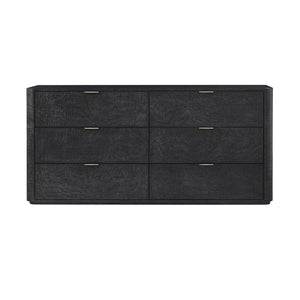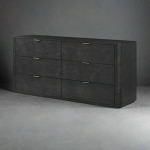 Elevate your bedroom with the Six Drawer Black Art Deco Style Dresser, a masterpiece of elegant design and meticulous craftsmanship. Shown in silent black, this dresser combines style and functionality.