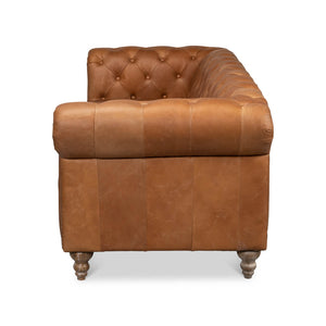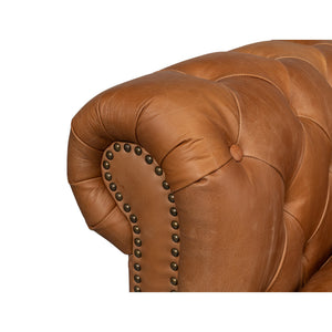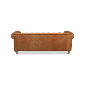 Sink into the timeless elegance of our Tufted Leather Chesterfield Sofa, combining traditional charm with unmatched comfort. Crafted from premium top-grain leather, this sofa boasts a rich caramel hue that invites warmth into any living space. The intricate button-tufted detailing on the backrest provides a touch of aristocratic flair, while the plush cushion seat offer a cozy nook for your daily unwinding.
