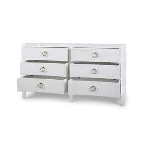 The subtle texture of the linen finish enhances its modern appeal, while the six spacious drawers provide ample storage for your essentials. Adorned with chic gold ring pulls, this chest effortlessly combines functionality with refined elegance, making it a standout piece in any room.