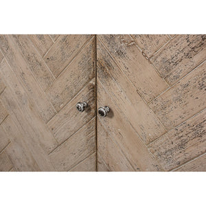 Introducing the White Rustic Chevron Modern Media Cabinet - Elevate your home with the perfect blend of form and function. This sideboard boasts a timeless chevron herringbone pattern, adding a touch of artisanal sophistication to your space. With generous storage behind four sleek doors, it’s ideal for keeping your essentials tucked away yet accessible.