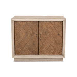 Argyle Rustic Two Door Credenza, reclaimed pine stone grey painted cabinet with two argyle inlaid wood doors. With a molded edge frame and square plinth base.