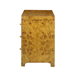 Introduce timeless elegance to your bedroom with the Art Deco Burl Chest. Crafted with a stunning rustic Mappa burl wood veneer, its golden honey tones and intricate wood grain patterns evoke a sense of warmth and sophistication.