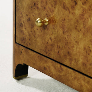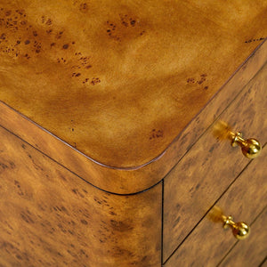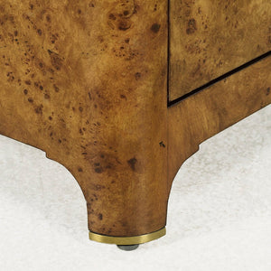 Introduce timeless elegance to your bedroom with the Art Deco Burl Nightstand. Crafted with a stunning rustic Mappa burl wood veneer, its golden honey tones and intricate wood grain patterns evoke a sense of warmth and sophistication.