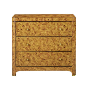 Featuring three spacious drawers adorned with sleek brass pulls, this piece combines practical storage with refined artistry. The softly curved edges and brass-capped feet add a touch of Art Deco glamour, making it a statement piece for both modern and classic interiors.