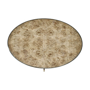 This exquisite Art Deco nightstand is the perfect addition to any bedroom that seeks a touch of glamour and sophistication. The oval shape, the ash burl veneer, and the ebonized trim make it a timeless piece that will elevate the decor of any room.