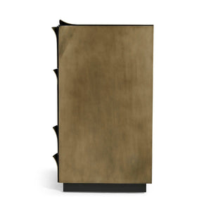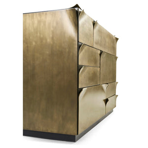 The dresser's sculptural form is accentuated by the reflective gold surface, which catches the light and adds warmth to its surroundings. Each of the eight drawers offers ample space, making it as functional as it is stylish. The subtle curvature of the drawers fronts and the clean lines of its silhouette ensure that it complements any decor style, from modern minimalist to decadent glamour.