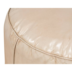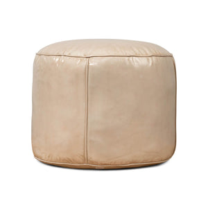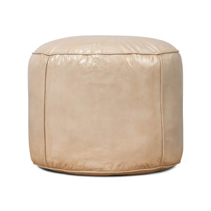 The Beige Round Leather Stool offers both style and function. Its rich, weathered leather adds a touch of timeless elegance, perfect for complementing a classic or rustic decor theme.
