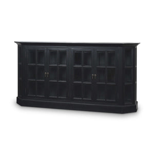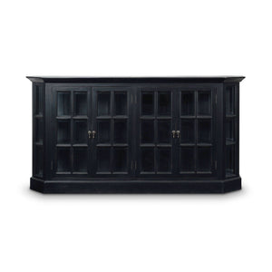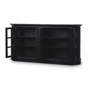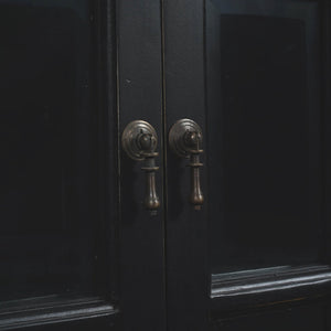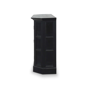 Enhance your home with the timeless charm of this Black Painted Display Cabinet, featuring a batavia black finish to the exterior and interior. Crafted from solid mahogany, this cabinet exudes provincial elegance with its elegant. The canted corners and framed glass doors add a touch of sophistication while allowing a clear view of your cherished items.