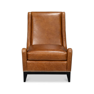 The Brown Leather Accent Chair perfectly fuses traditional charm and modern comfort. Crafted with meticulous attention to detail, this chair features a supple top-grain leather that beckons you to sit and unwind. The warm, rich Cuba Brown leather is beautifully complemented by the classic nailhead trim, exuding a sense of luxury and sophistication that elevates any living space.