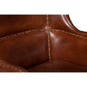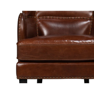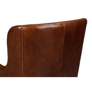 The Brown Leather Wing Chair is a stunning blend of traditional elegance and superior craftsmanship. Upholstered in rich, full-grain Newark brown leather, this chair exudes timeless sophistication. The classic wingback design features curved arms, and stitched panel detailing with meticulous nailhead trim, enhancing its refined look.
