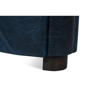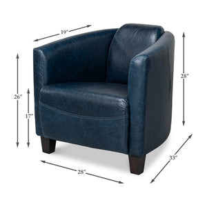 Vintage-style Chateau Blue Leather Club Chair. Crafted of luxurious top-grain leather in wonderful blue hue, this stylish and comfortable chair is perfect for your den, library, or living room.
