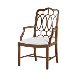 The Chippendale Dining Armchair pays tribute to 18th-century English design with a fresh sense of proportion and purpose. Its iconic back features an interlocking oval and lattice pattern—classic elements drawn from Thomas Chippendale's legendary style—while a gently curved crest rail and squared stretchers offer architectural clarity and strength.