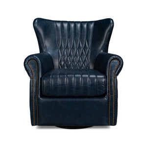Sink into luxury with our Classic Blue Leather Swivel Chair, a masterpiece that encapsulates timeless charm and contemporary comfort. Crafted with high-quality Chateau Blue leather, it boasts iconic diamond quilting and channels that bring an air of aristocratic elegance to any room.