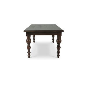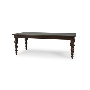 The dark finish complements a variety of interior styles, from rustic farmhouse to modern minimalist. The unusual turned and tapered legs add a unique touch, while the robust construction ensures it can handle everyday use and special occasions alike.