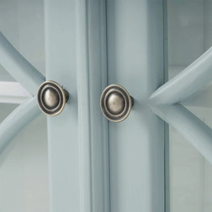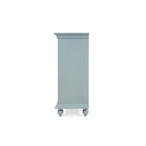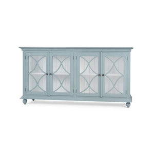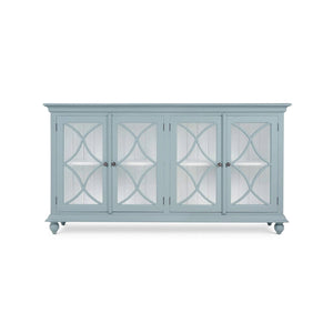 Add a touch of elegance and sophistication to your dining area with our Classic Four Door Credenza - Frosted Blue. This exquisite piece is masterfully crafted from high-quality mahogany with a custom painted finish - the exterior in Frosted Blue paint finish and the interior in True White.