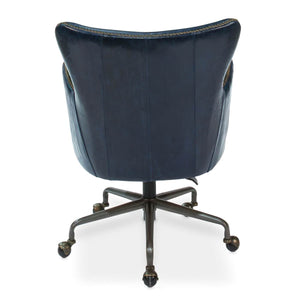 A classic leather office chair in Chateau Blue. This stately chair has a smooth leather interior and exterior and is accented with nailhead trim accents. It rests on a 5 prong base. Crafted with Pure Aniline top-grade cow leather.