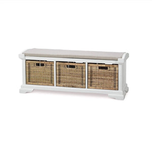 This bench provides ample storage space with its three spacious baskets, ideal for organizing shoes, blankets, or other essentials, keeping your home both stylish and clutter-free.