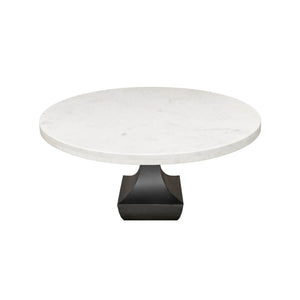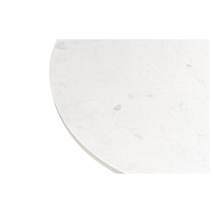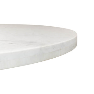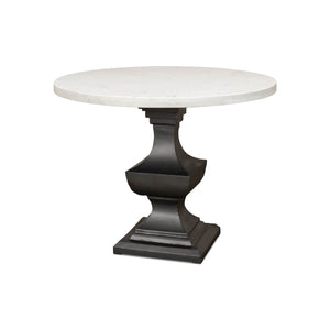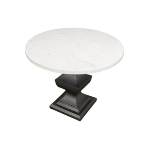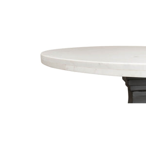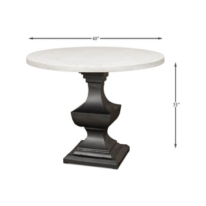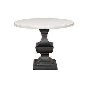Marble Top Dining Table, a wonderful piece that is sure to elevate any dining room. This table boasts a smooth and gleaming 40-inch round white marble top that sits atop a metal pedestal base. The base is finished in a chic gunmetal color and is intricately designed with a baroque style that exudes sophistication and elegance.