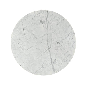 A Neo Classic Scottish style carved oak round center table with an Italian Carrara marble top, carved Vitruvian scroll work frieze, and out flaring fluted pedestal base.