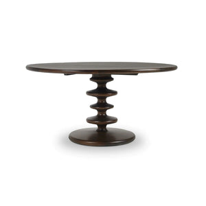 Striking and sculptural, the Mid Century Modern Round Dining Table makes a bold statement with its dramatic silhouette and artisanal detailing. Crafted from solid mahogany and finished in a rich dark walnut stain, this table balances timeless craftsmanship with standout design. The centerpiece is its pedestal base—a rippling, tiered column composed of stacked, rounded discs, echoing the rhythm and elegance of mid-century modern sculpture.