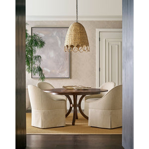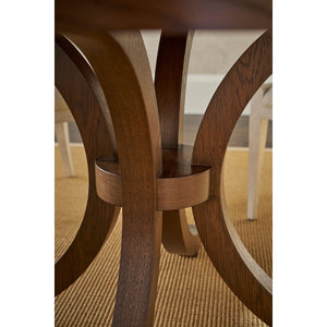 Curved forms converge in an elegant X-shaped base on the Round Oak Coastal Dining Table, offering a refined take on 19th century design. Crafted in oak and finished in a rich Brownstone hue, this piece blends traditional craftsmanship with a coastal-inspired silhouette. The round top provides a soft, welcoming presence, making it ideal for both casual gatherings and formal dining.