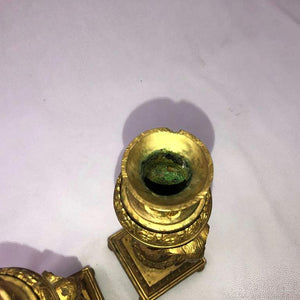 A pair of French bronze Cassollette with urn form chased ram's heads with garlands and a fluted pillar and raised on a chased square base with bunn feet. ca 1790