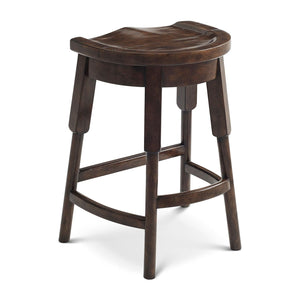 The Rustic English Counter Stool adds classic countryside charm to your kitchen or bar. Made from solid wood, it features a hand-carved saddle seat shaped for comfort. The rounded legs and visible joinery highlight its sturdy build. Its deep, aged finish brings out the wood’s natural grain, giving it a warm, collected look.