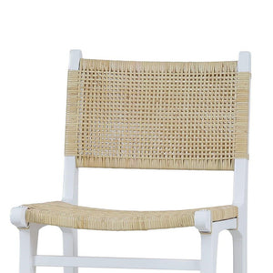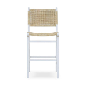 The Scandinavian White Painted Counter Stool with Woven Rattan offers a refined balance of modern simplicity and organic texture. The Stool has a crisp, true white painted teak frame paired with a handwoven natural rattan seat and back, creating a light, elevated silhouette that feels both fresh and timeless.