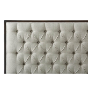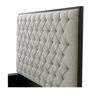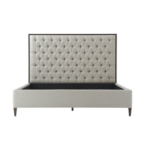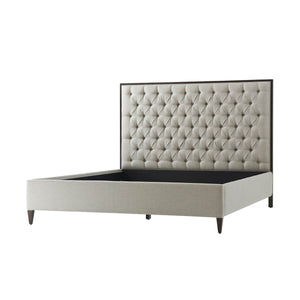 Classic Modern California King Size Bed with a tufted panel upholstered headboard, solid beech frame in our Ossian finish with upholstered rails and raised on square tapered legs.