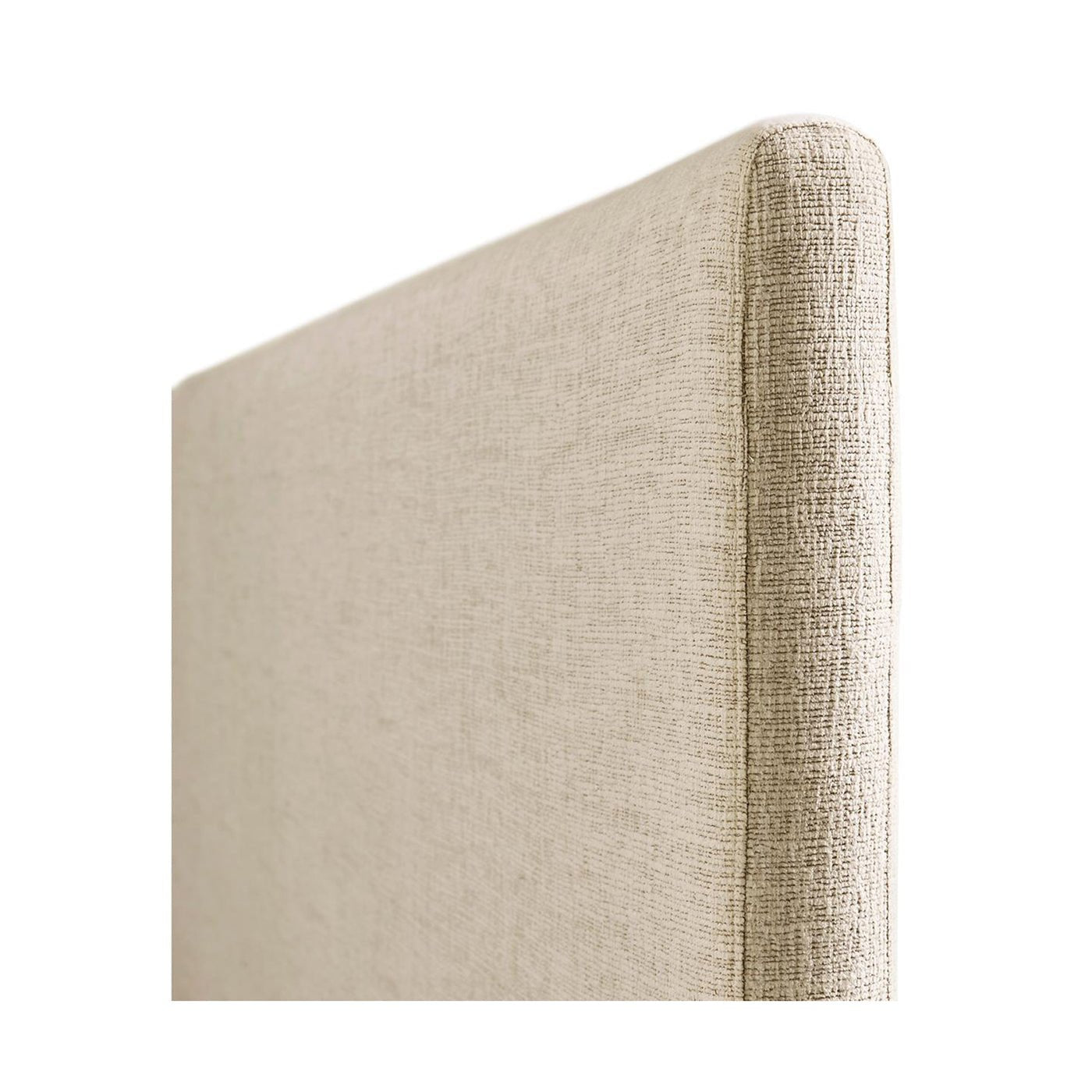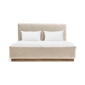 The Contemporary Upholstered King Bed with Wood Base has a calm, modern look with clean lines, a softly padded headboard, and a low profile. The light neutral upholstery on the headboard and footboard adds comfort and a soft touch, while keeping the design balanced. Its simple shape makes it a peaceful centerpiece for modern or organic-inspired bedrooms.
