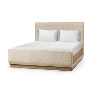 The Contemporary Upholstered Queen Bed with Wood Base has a calm, modern look with clean lines, a softly padded headboard, and a low profile. The light neutral upholstery on the headboard and footboard adds comfort and a soft touch, while keeping the design balanced. Its simple shape makes it a peaceful centerpiece for modern or organic-inspired bedrooms.