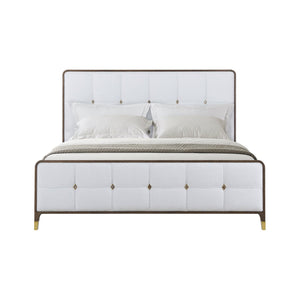 The gently curved frame, dark wood tones, and brass-capped feet bring a sense of balance and sophistication to contemporary or transitional interiors. Designed to blend comfort and couture craftsmanship, this bed elevates the look and feel of any master suite.